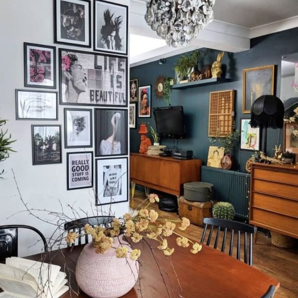 A gallery wall tells a story about your interests, travels, and inspirations. It makes the space feel lived-in and unique.