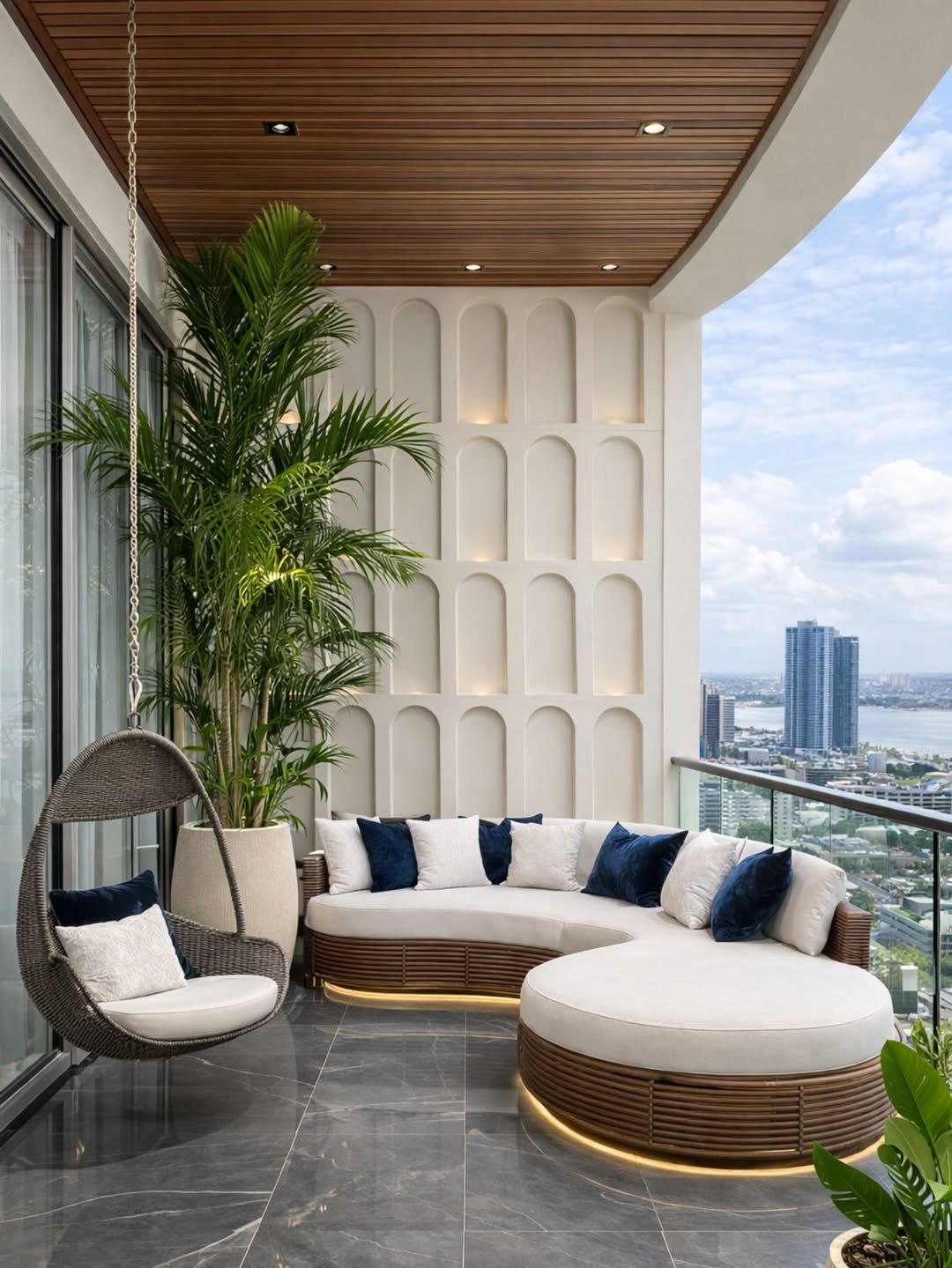 The “finished” feel of this design comes from the integration of biophilic elements that bridge the gap between structured architecture and nature.