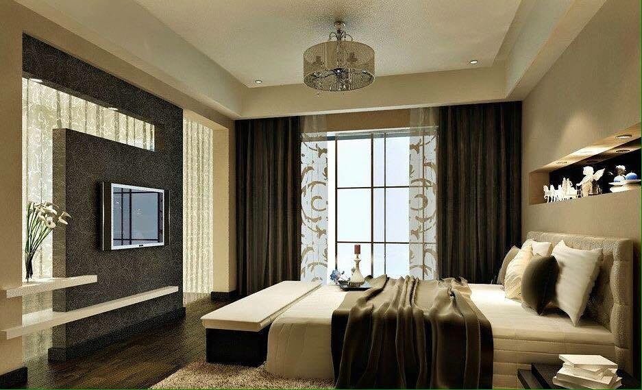 This bedroom showcases a perfect blend of modern sophistication and cozy comfort. The design is centered around a warm neutral color palette featuring shades of beige, cream, and deep brown. These tones create a calm and inviting atmosphere, making the space ideal for relaxation and rest.
